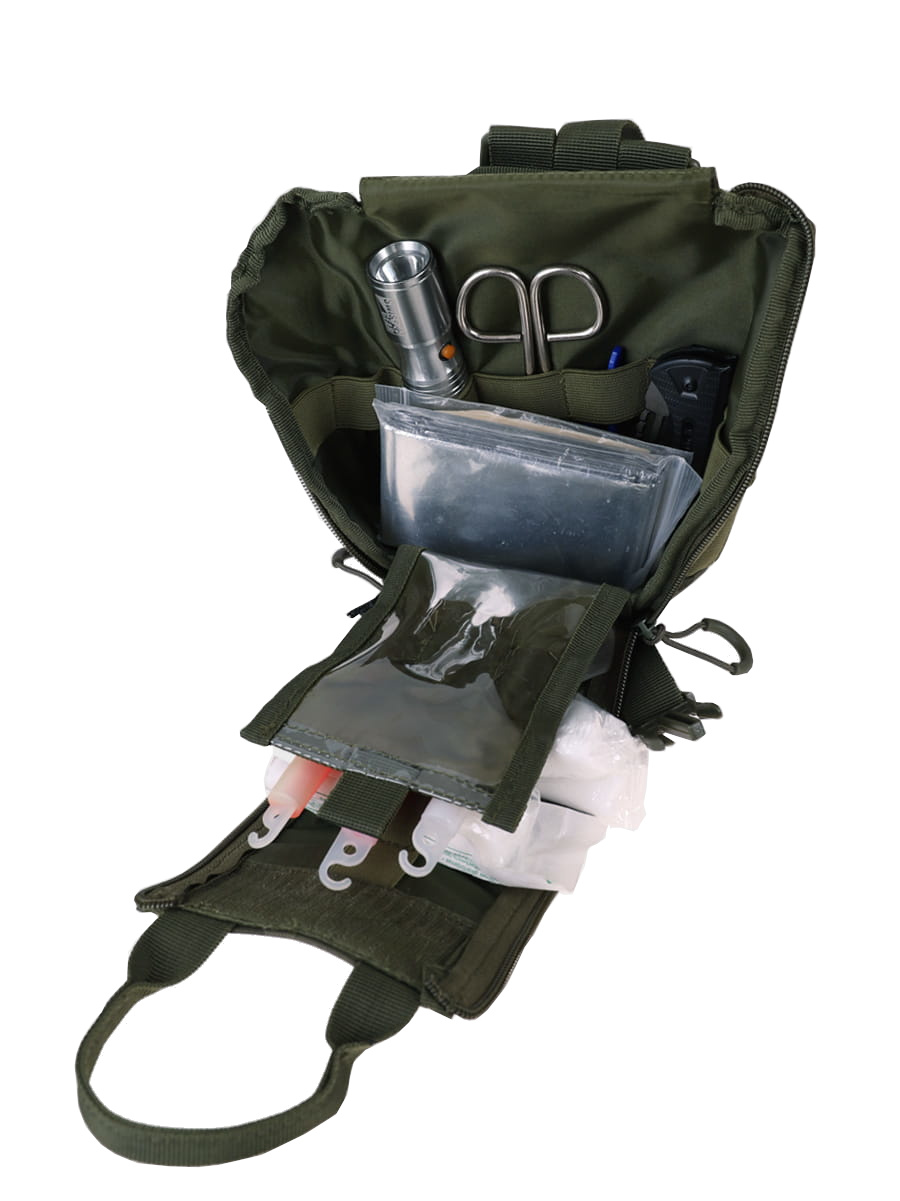 UWAGA! Apteczka nie zawiera wyposażenia. Przedmiotem oferty jest jedynie Apteczka Zrywana Trauma Kit w kolorze WZ.93. Pozostałe elementy służą wizualizacji funkcjonalności.