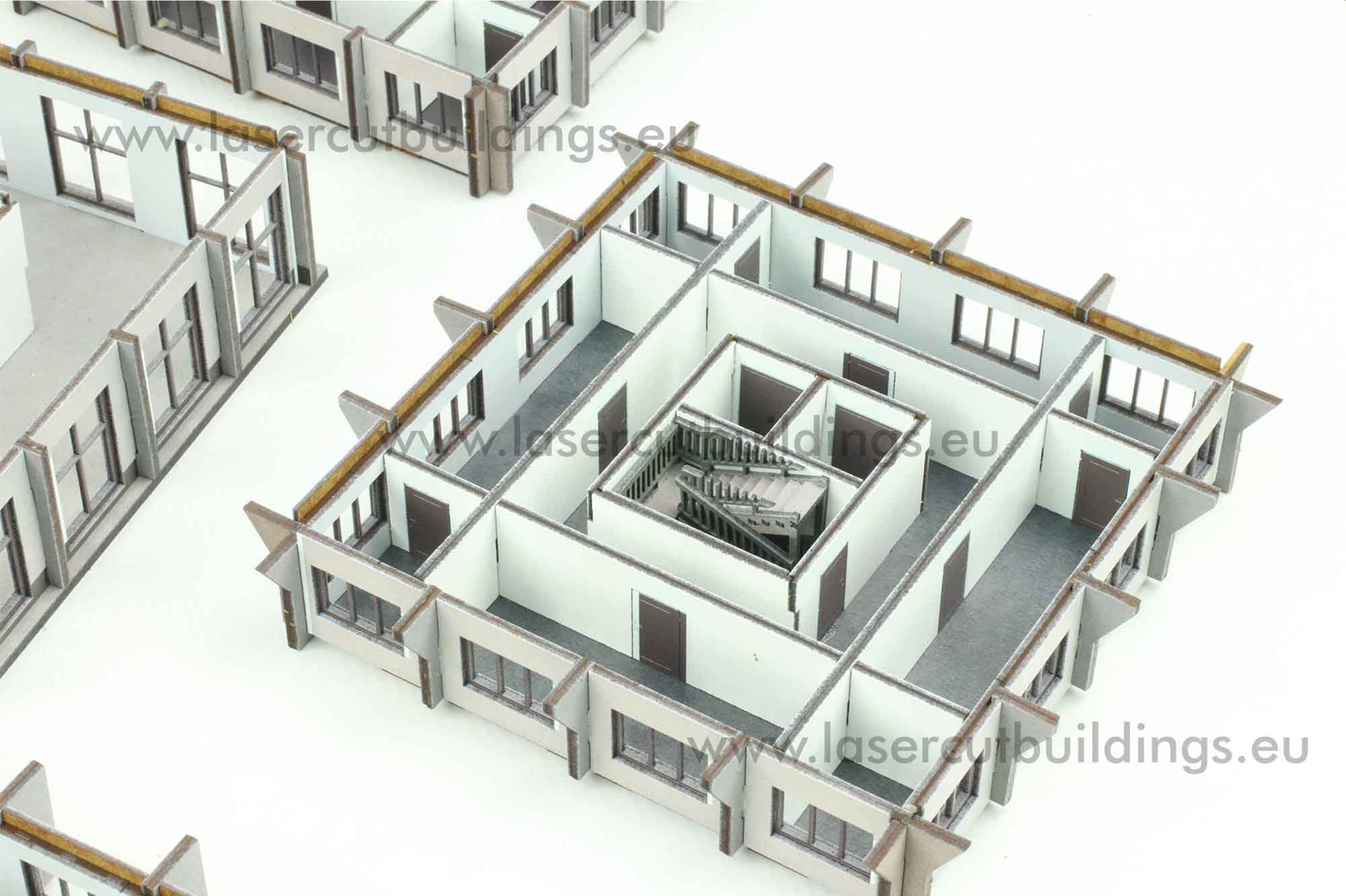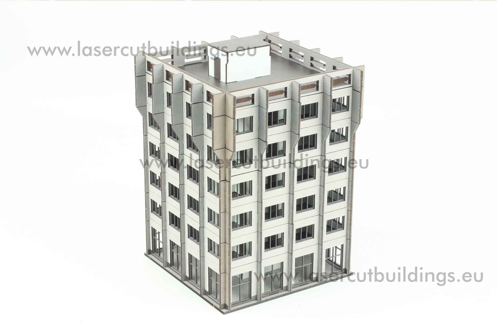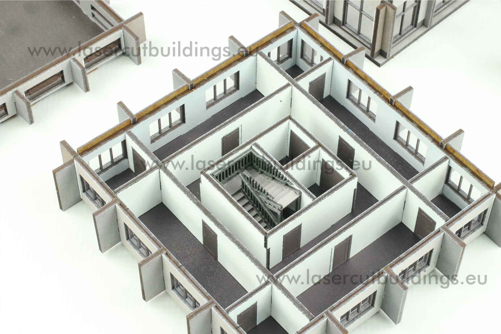 Biurowiec II LBHP0356 to doskonale zaprojektowana makieta w skali 1:56 (28mm), idealna do gier bitewnych, dioram i ekspozycji modeli. Wykonana z płyty HDF o grubości 3 mm i 1,5 mm, konstrukcja łączy trwałość z wysokim poziomem detali.