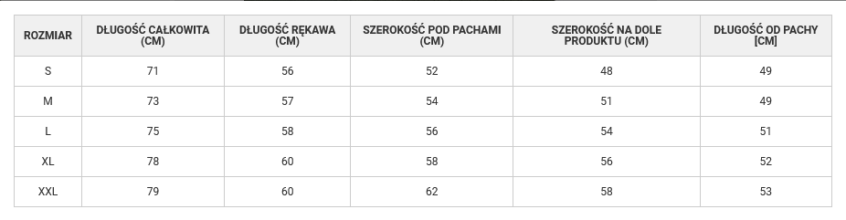 - Materiał Stójka, Barki, Rękawy: 56% bawełna, 44% poliester – Rip-Stop