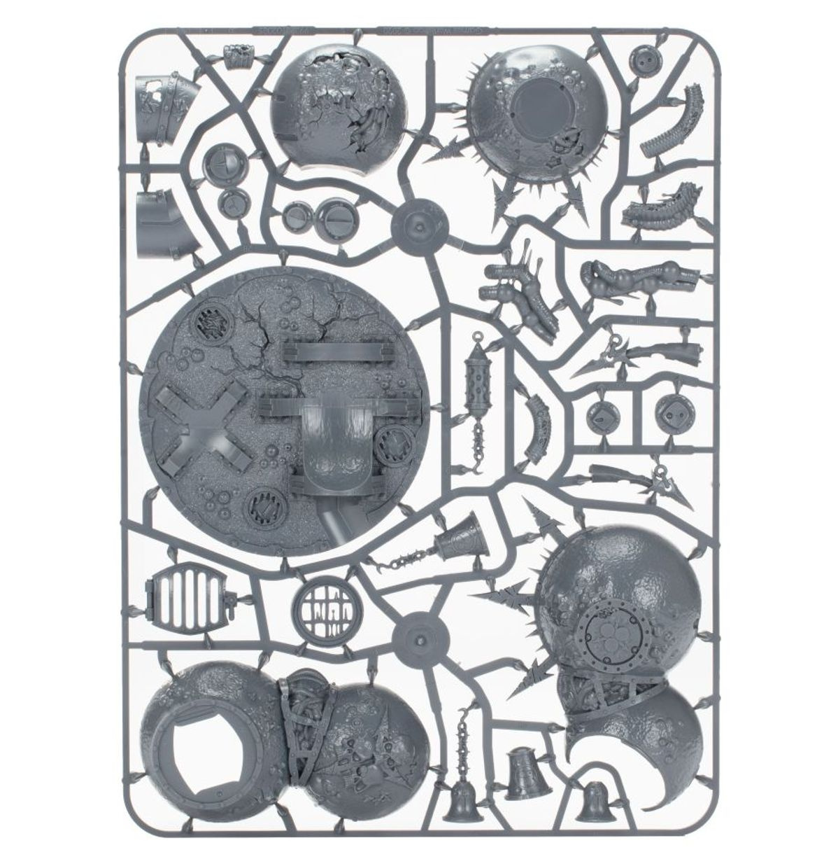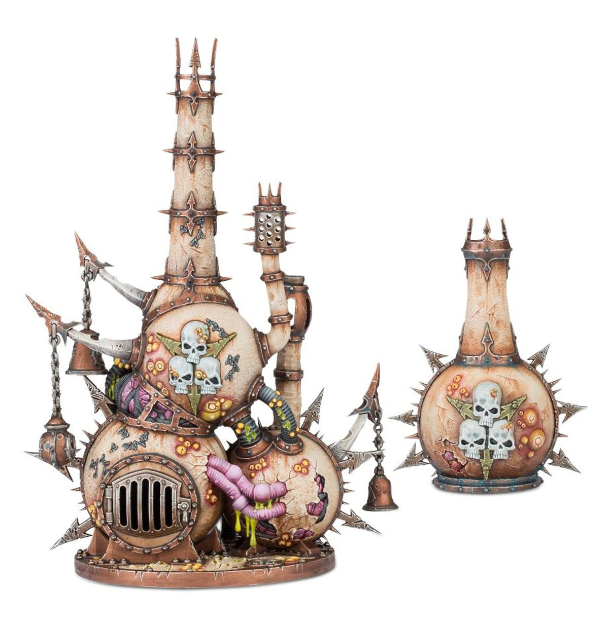 Wyjątkowa konstrukcja – dwuelementowa forma z detalami typowymi dla Nurgla – rdzewiejące kadzielnice, dzwony, pokrzywione metalowe elementy i wypływająca zaraza