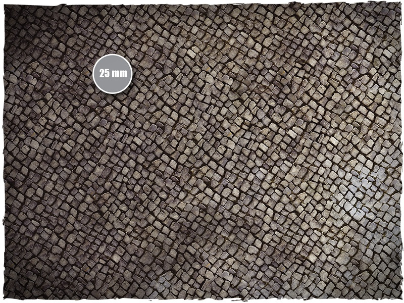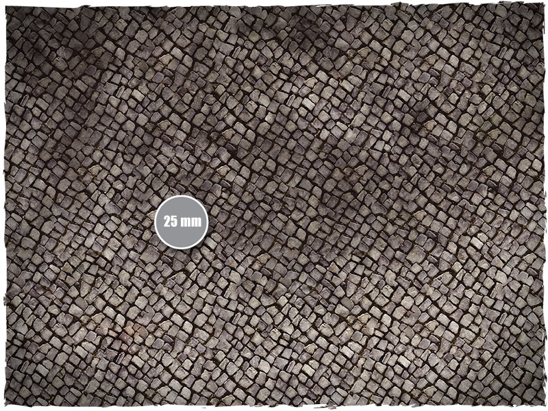 DEEP-CUT Cobblestone to wysokiej klasy mata o wymiarach 183 × 122 cm (4x6 stóp), wykonana z materiału typu mousepad. Dzięki realistycznemu wzorowi brukowanych ulic świetnie sprawdzi się jako tło dla bitew miejskich, oblężeń i działań operacyjnych w gęsto zabudowanych terenach.