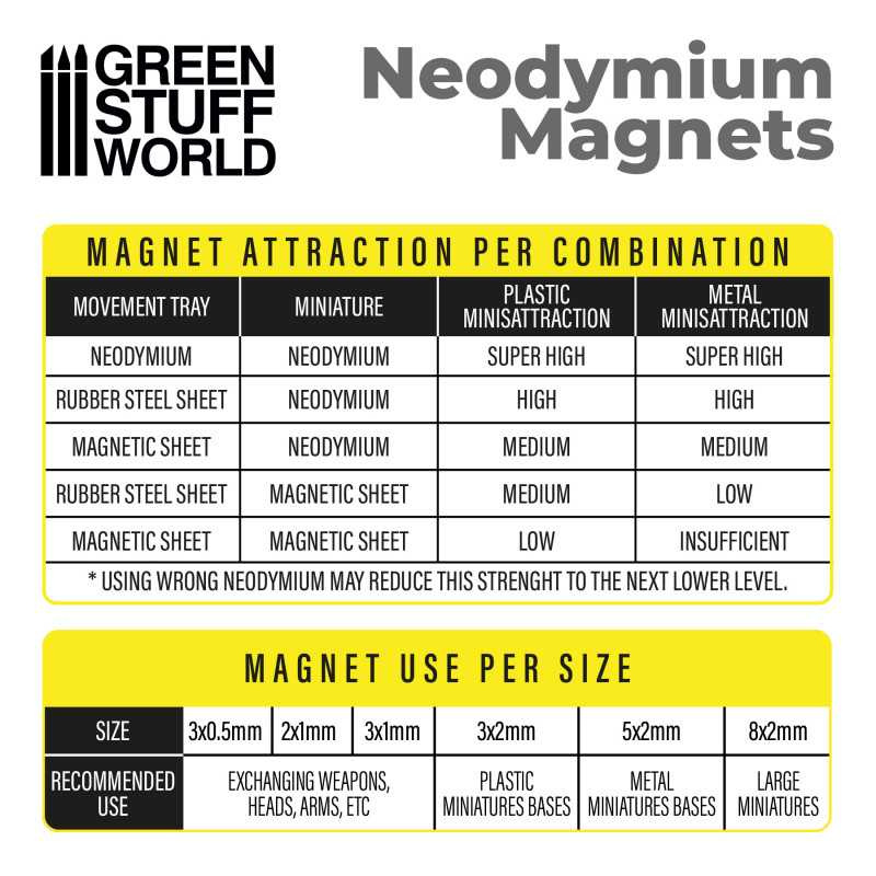 - Użycie niewłaściwych magnesów neodymowych może obniżyć ich siłę przyciągania do niższego poziomu.