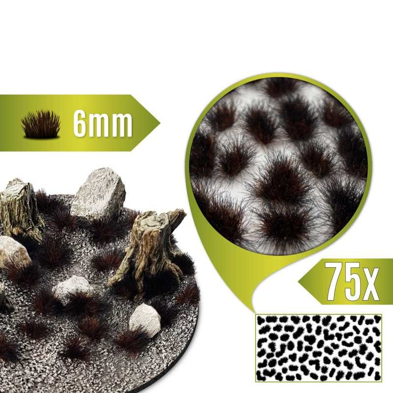 GSW Static Grass Tufts 6mm – Burnt Brown to wysokiej jakości, samoprzylepne kępki trawy modelarskiej w ciemnym, spalonym odcieniu brązu, idealne do odwzorowania spalonych, suchych lub jesiennych krajobrazów. Ich realistyczna barwa i tekstura sprawiają, że doskonale nadają się do tworzenia ponurych, zniszczonych lub opuszczonych terenów, ruin czy pustkowi po bitwach.