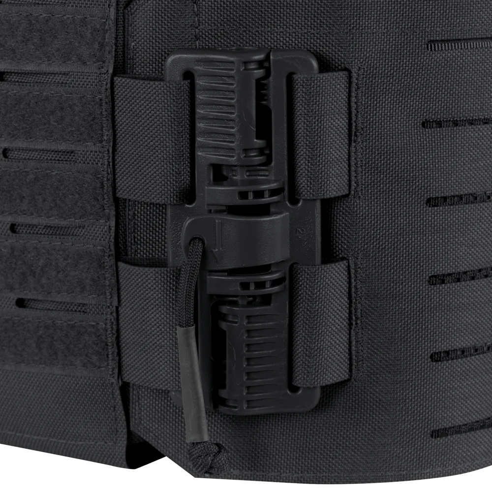 Kamizelka została wyposażona w system RS (Rapid Switch), który pozwala na błyskawiczne wymienianie frontowego panelu bez konieczności zdejmowania całej konstrukcji. Pas biodrowy typu Quick Release zapewnia wygodę, stabilność oraz szybkie dopasowanie do sylwetki.