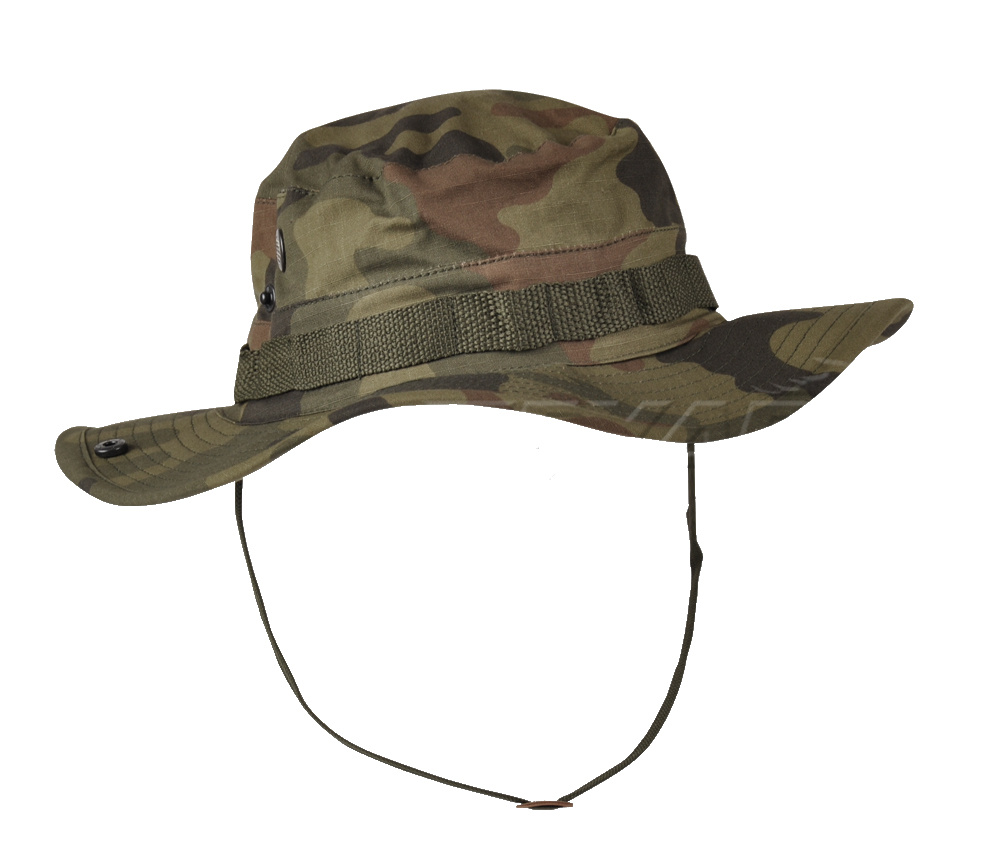 Kapelusz wojskowy wykony z 100% bawełny, która została wzmocniona siatką Rip Stop. Materiał jest szybkoschnący, oddychający i lekki.