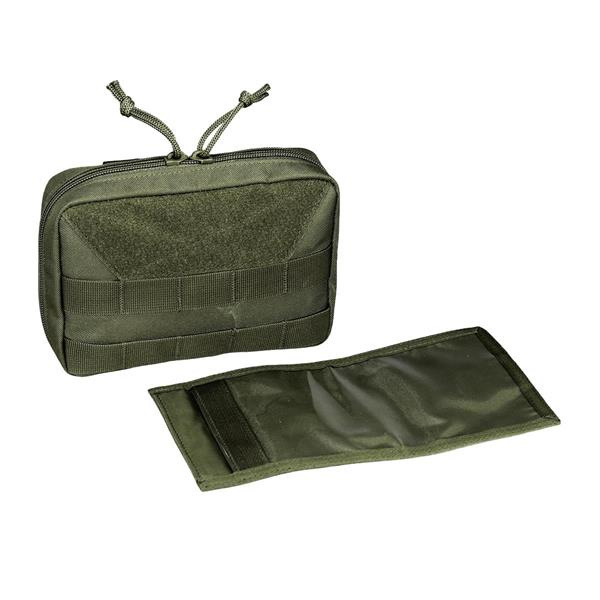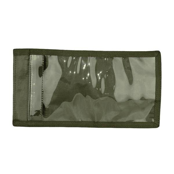- Dopinany panel z oknem identyfikacyjnym na mapę lub dokumenty, z drugiej strony posiada elastyczną taśmę na naboje.