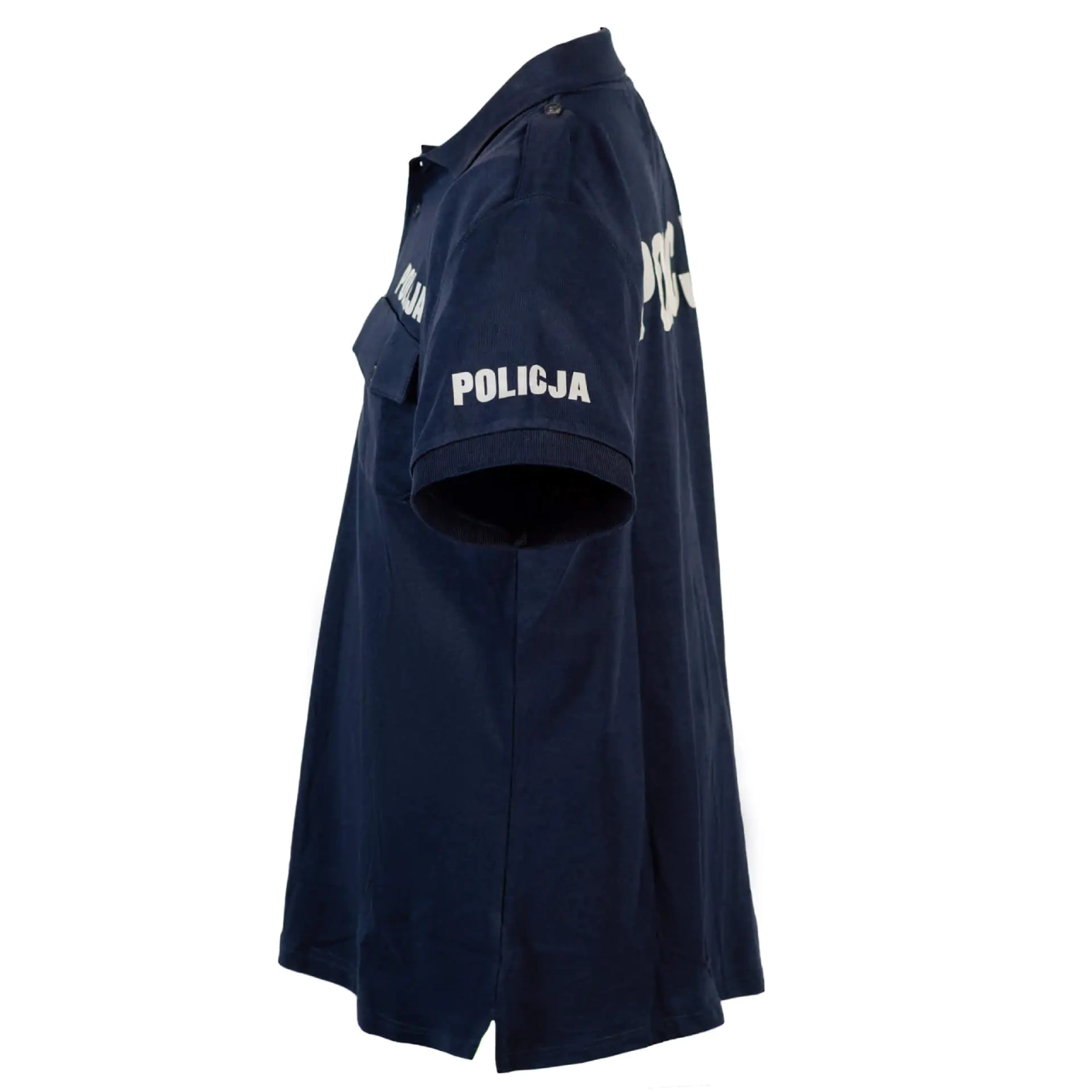 Profesjonalna koszulka polo Policja w kolorze granatowym, wykonana zgodnie z oficjalnymi wytycznymi Komendy Głównej Policji. Stworzona z myślą o wygodzie i trwałości – dzięki połączeniu 80% bawełny i 20% nylonu koszulka idealnie sprawdzi się podczas intensywnej służby. Doskonała widoczność w każdych warunkach zapewniają odblaskowe napisy POLICJA na przodzie, plecach i rękawach. Dodatkowe funkcjonalne elementy, takie jak pagony, kieszenie, miejsce na imiennik i ściągacze, czynią ją w pełni zgodną z obowiązującymi przepisami.