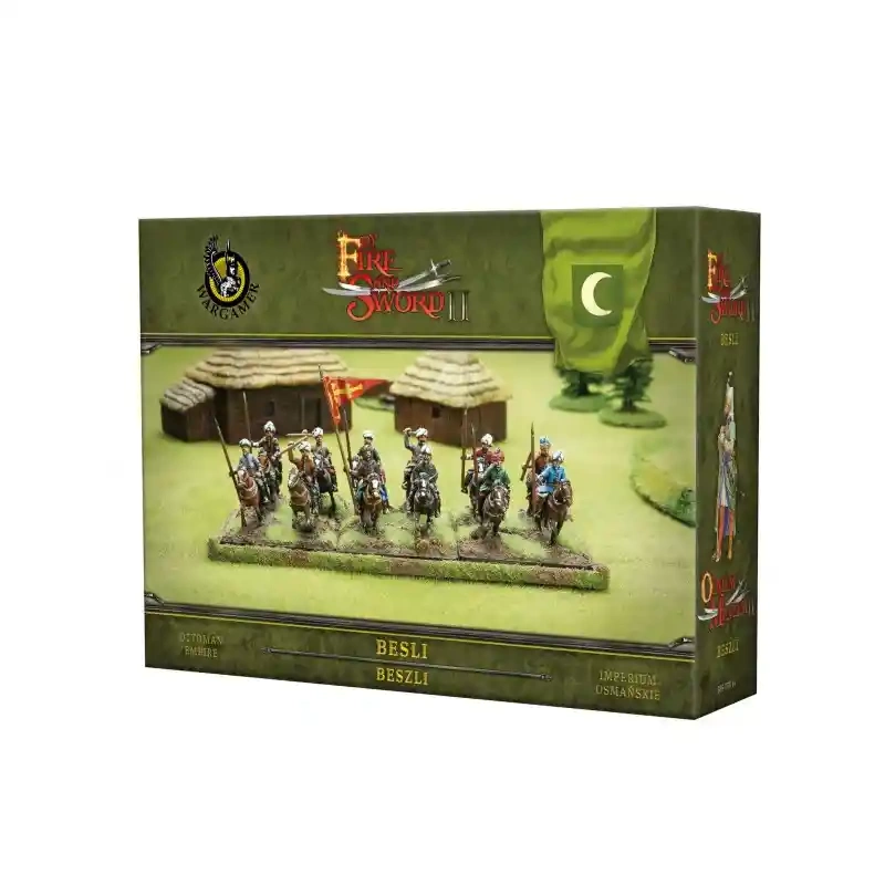 „OGNIEM I MIECZEM - Beszli” to zestaw, który wprowadza do gry lekką kawalerię osmańską, specjalizującą się w szybkich rajdach i akcjach oskrzydlających. Beszli byli jeźdźcami pochodzącymi z pogranicza, wykorzystywanymi do działań zwiadowczych, osłonowych i raiderskich. Zestaw ten umożliwia odtworzenie tych szybkich i zwrotnych jednostek, które były kluczowe w działaniach na małych odległościach, oskrzydlających i niszczących linie zaopatrzenia przeciwnika.