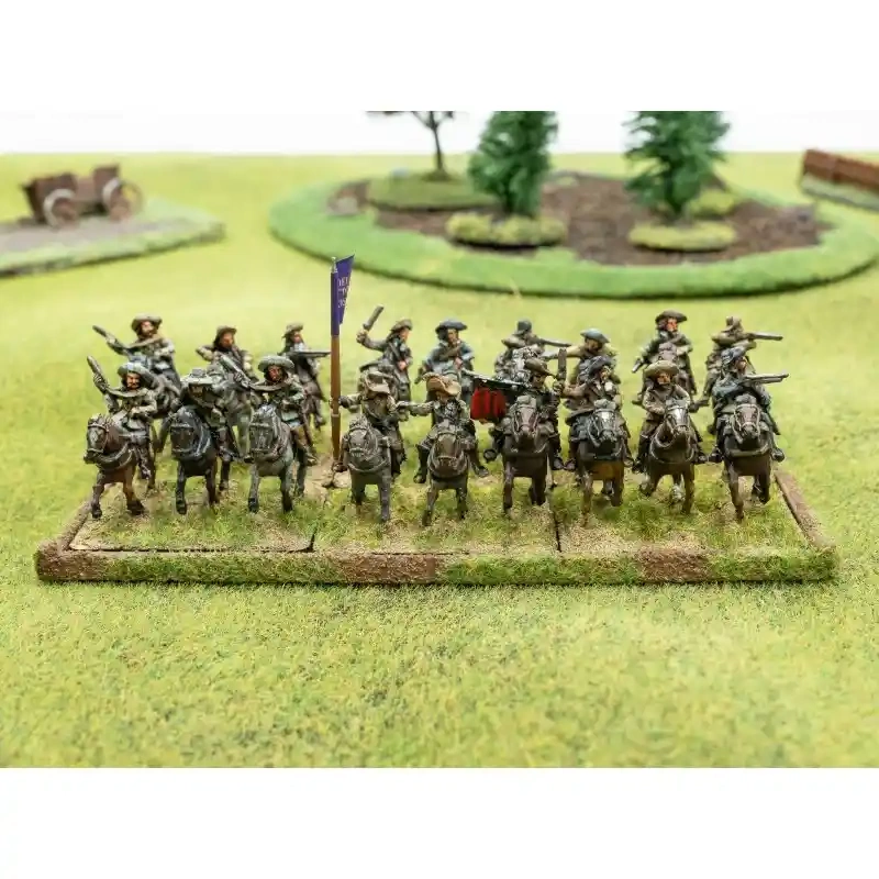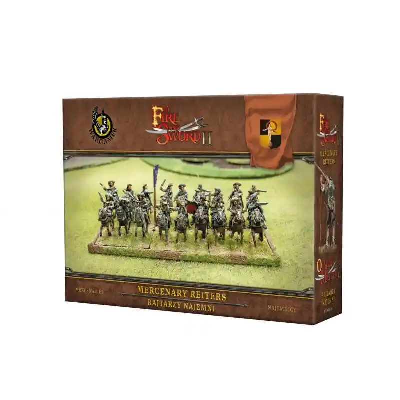 „OGNIEM I MIECZEM - Rajtarzy Najemni” to zestaw, który umożliwia dodanie do armii jednostek rajtarów najemnych, będących podstawą kawalerii w XVI i XVII wieku. Rajtaria, wykształcona w północnych krajach niemieckich, stanowiła elitarną jednostkę uzbrojoną w pistolety, pałasze i arkebuzy. Dzięki swej manewrowości i sile ognia, rajtarzy byli niezwykle skuteczni w walce, zwłaszcza w połączeniu z ich zdolnością do szarżowania i tworzenia formacji bojowych. Zestaw ten pozwala odtworzyć tę prestiżową formację i wykorzystać jej pełny potencjał w bitwach.