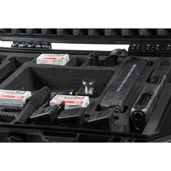 Walizka pomieści około 4 średnie urządzenia wielkości Glocka lub 2 urządzenia wraz z dodatkowymi akcesoriami.