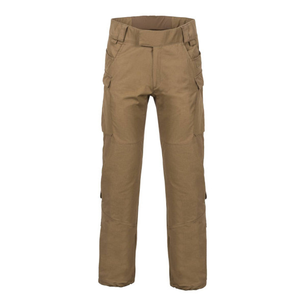 Spodnie MBDU to część naszego zaawansowanego munduru polowego Modern Battle Dress Uniform. Mundur wykonany został z najwyższej klasy materiałów, których odpowiedni dobór zapewnia nie tylko jego odpowiednią wytrzymałość, ale przede wszystkim pełną swobodę ruchów, tak potrzebną na współczesnym polu walki. Spodnie mają lekko luźny, profilowany krój. Pas zapinany jest na rzep, gwarantujący dodatkową regulację obwodu. Szerokie szlufki dopasowane do pasów o szerokości do 45mm zapewniają stabilność nawet w przypadku pasów z dodatkowym obciążeniem, takim jak kabury czy ładownice. Kliny z tkaniny VersaStretch® umieszczone z tyłu oraz w kroku zapewniają pełną swobodę ruchów. Klasyczne biodrowe kieszenie mają wzmocnione krawędzie chroniące je przed nadmiernym zużyciem przez klipsy od noży, latarek itd. Dodatkowo tylne kieszenie, również ze wzmocnionymi krawędziami, z łatwością pomieszczą nawet duże przedmioty takie jak magazynek karabinowy. Na udach umieszczone zostały pojemne kieszenie cargo zapinane na guziki. Na łydkach znajdują się niewielkie kieszenie zapinane na rzepy mogące pomieścić opatrunek osobisty.