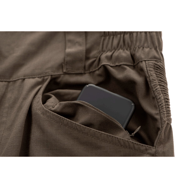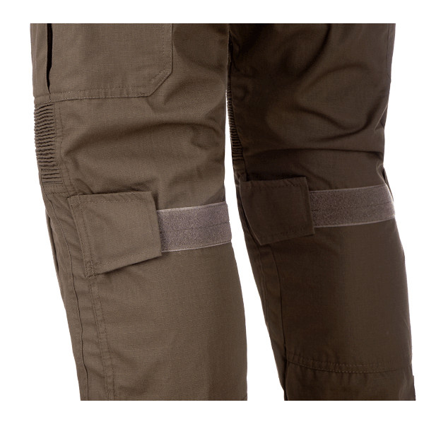Posiada 10 kieszeni o różnych rozmiarach: 4 z przodu, 2 z boku, 2 z tyłu i 2 w okolicy kostki. Nakolanniki z regulacją wysokości i regulowanym rzepem w okolicy kostki oraz z tyłu nakolannika.