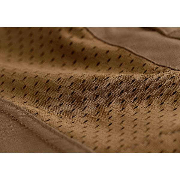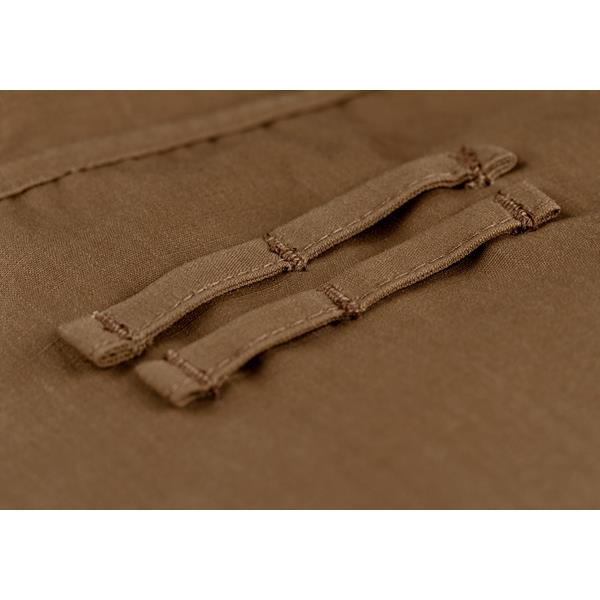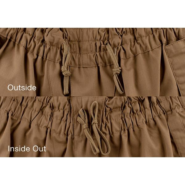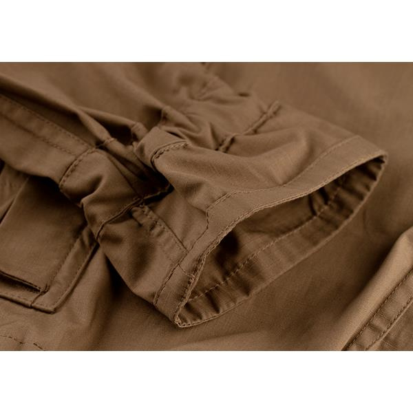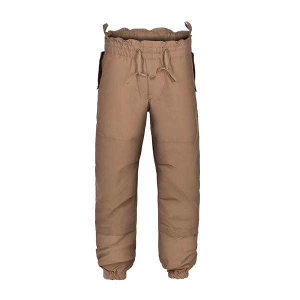 Spodnie są szerokie i zapewniają swobodę ruchów. Pas jest regulowany za pomocą dwóch elastycznych taśm, pomiędzy którymi został włożony sznurek. Dół spodni można również regulować za pomocą sznurka. Bardziej wyeksponowany obszar, który łatwiej się zużywa, jest wyposażony w podszewkę wzmacniającą, wykonaną z materiału podstawowego. Nacięcia w okolicy kieszeni są umieszczone po bokach; w razie potrzeby zamyka się je za pomocą przycisków.