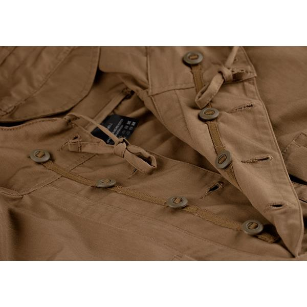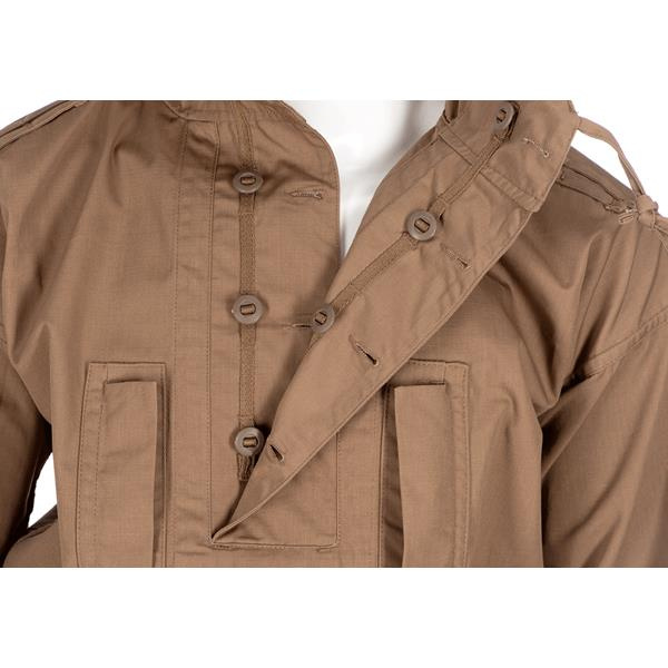 Kaptur można regulować w zależności od rozmiaru i konturu twarzy; jest wyposażony w wronę. Aby jak najlepiej słyszeć dźwięki z zewnątrz, kaptur jest wyposażony w siateczkową wstawkę przy uszach. Kurtka posiada zapięcie na guziki wszyte na złożonym materiale: jest wygodna i bezpieczna. Kurtka posiada cztery kieszenie z przodu. Sznurek do regulacji objętości w zależności od talii. Aby zapewnić możliwość uzupełnienia części maskującej, kurtka została wyposażona w specjalne otwory przeznaczone do mocowania skrzydeł, ramek itp.