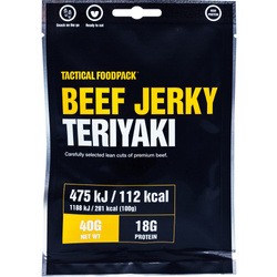 Suszona wołowina Beef Teriyaki to idealna opcja na przekąskę w trakcie wędrówki, wycieczki, czy jako dodatek do Twojej codziennej diety. Tactical Foodpack dba o jakość swoich produktów, dlatego możesz cieszyć się smakiem i korzyściami odżywczymi tej przekąski.