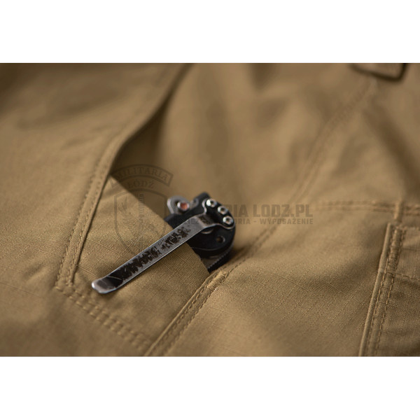 - Elastyczny materiał – Wykonane z mieszanki Policotton RipStop, zapewniającej wytrzymałość oraz swobodę ruchów dzięki dopasowanemu krojowi.