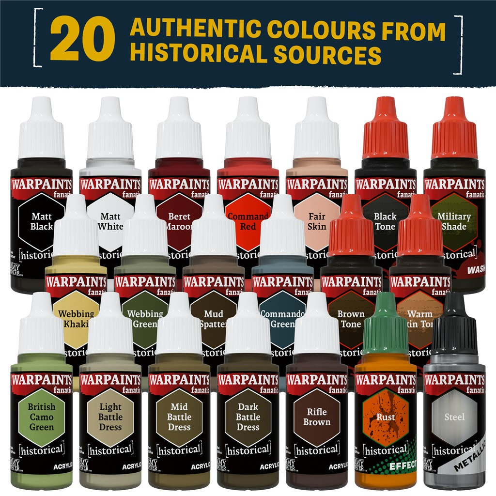 Zestaw World War II - British Paint Set od The Army Painter to kompletny zestaw farb, stworzony specjalnie z myślą o realistycznym odwzorowaniu żołnierzy armii brytyjskiej z okresu II wojny światowej. Dzięki współpracy z historykami wojskowości, paleta barw idealnie oddaje detale charakterystyczne dla brytyjskich mundurów, broni i wyposażenia — od klasycznego khaki po barwy jednostek specjalnych.