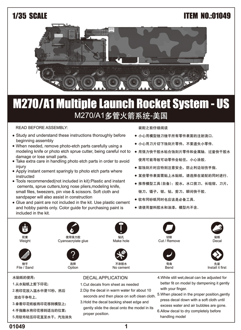 TRUMPETER 01049 M270/A1 Multiple Launch Rocket System 1/35