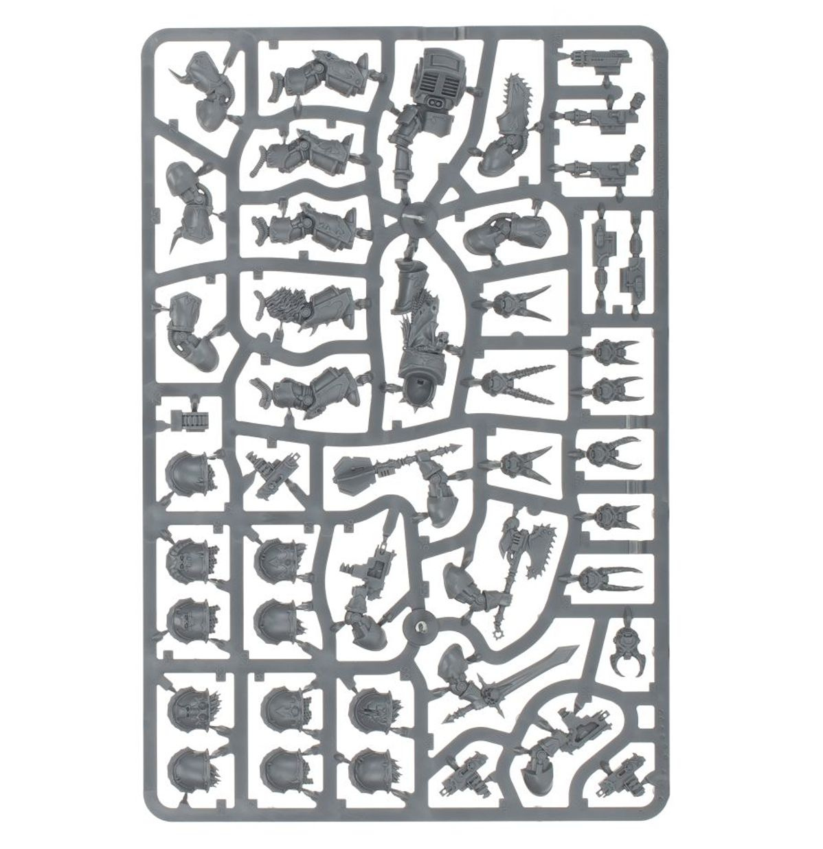 Ten zestaw składa się z 82 plastikowych elementów i jest wyposażony w 5 okrągłych podstaw Citadel 40 mm, a także 1 arkusz transferowy Chaos Space Marines zawierający 364 Symbole Chaosu i oznaczenia Legionu. Te miniatury są dostarczane niepomalowane i wymagają montażu – zalecamy użycie kleju do tworzyw sztucznych Citadel i farb Citadel Color.