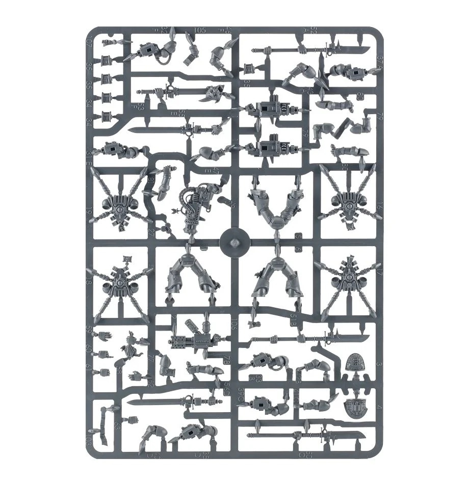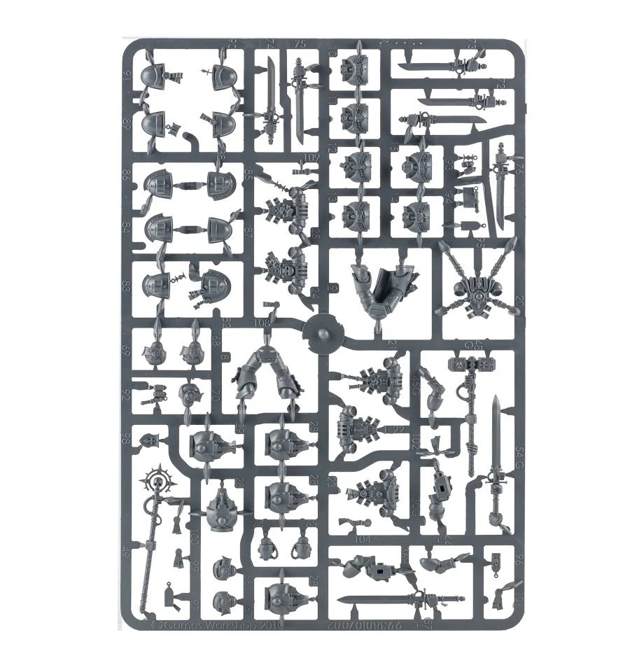 Ten wieloczęściowy zestaw w plastikowym pudełku zawiera 236 elementów i 10 okrągłych podstawek Cytadela 32mm, z których można zbudować oddział uderzeniowy Grey Knight.