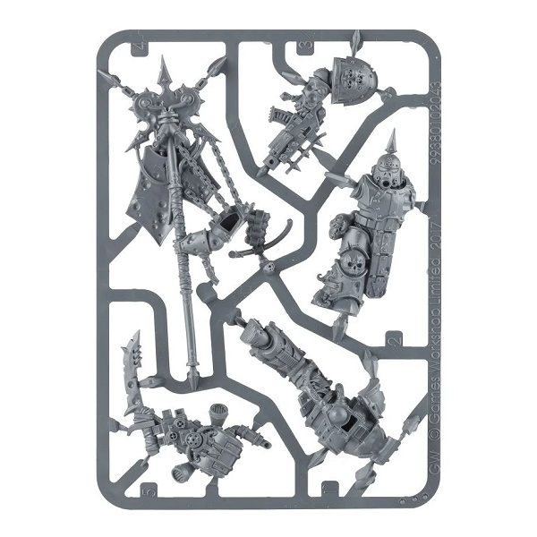 zawiera elementy niezbędne do złożenia Plague Marine Icon Bearer. Uzbrojony