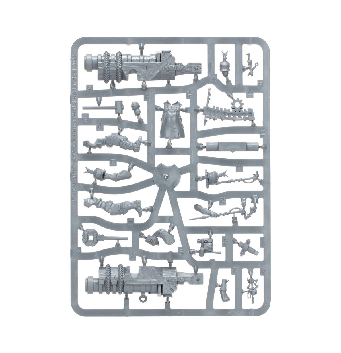 Zestaw ten składa się z 61 plastikowych elementów i jest dostarczany z okrągłą podstawą Citadel 90 mm. W zestawie znajduje się także arkusz transferowy Cities of Sigmar, zawierający 410 ikon Wolnego Miasta, pieczęcie kultu Sigmarite i inne formy heraldyki.