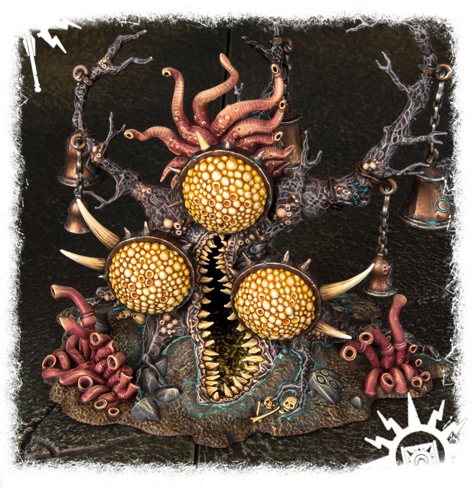 Gnarlmaw. Zdominowany przez 3 duże narośla Nurgle, pokrytą chitynowymi