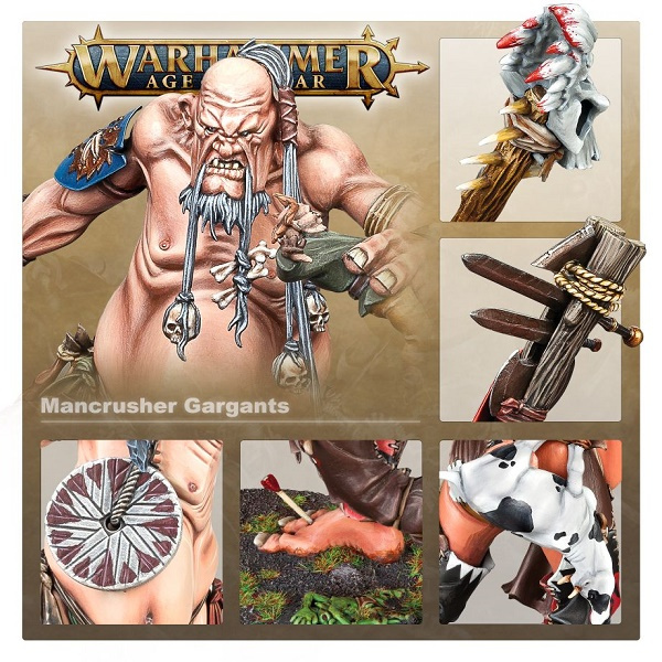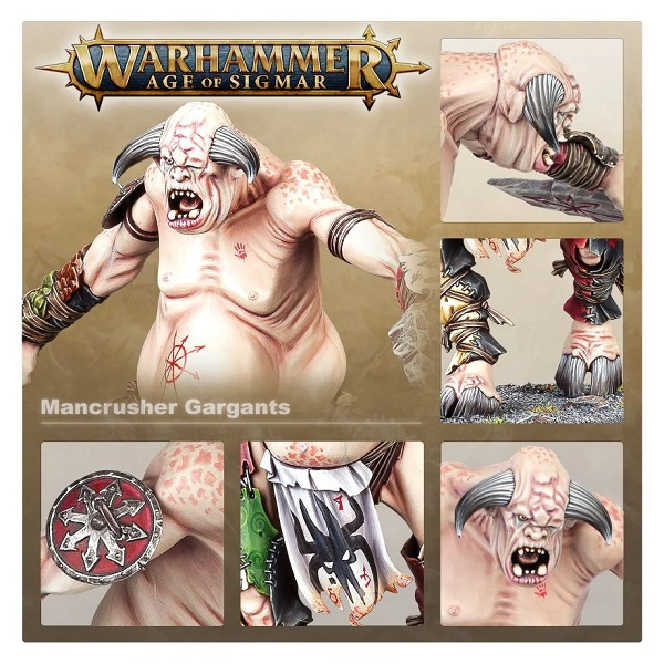 Twoja armia potrzebuje dodatkowej siły? Masz ochotę na nowy, fajny projekt do pomalowania? Chcesz poradzić sobie z nieznośnymi wrogami, wkładając ich do kieszeni? Jest szansa, że ​​potrzebujesz jednego lub dwóch gargantów! Ten zestaw został zaprojektowany, aby spełnić wszystkie twoje potrzeby. Rozrzucaj wrogów na bok za pomocą Aleguzzler Gargants, siej gniew mrocznych bogów za pomocą Chaos Gargants lub wzmocnij Sons of Behemat Battleline kilkoma Mancrusher Gargants.