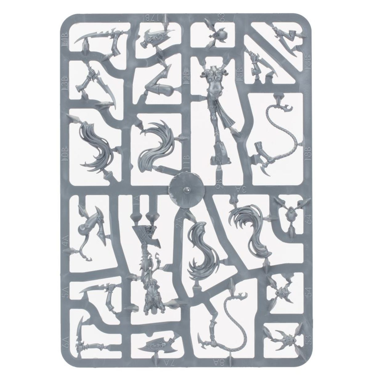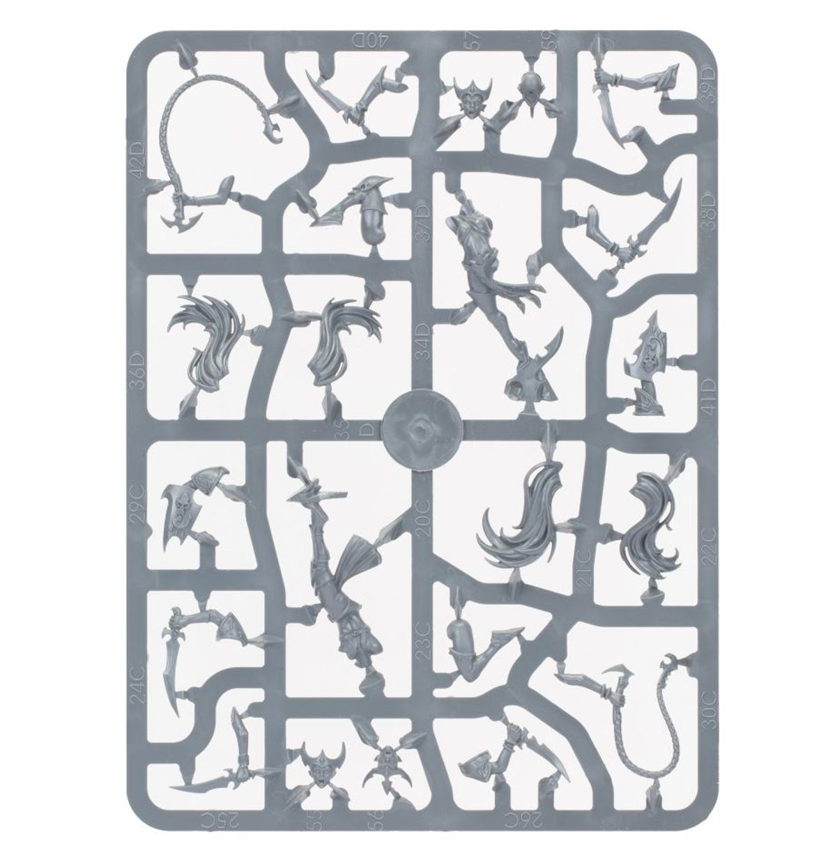 Elfy Czarownic składają się ze 134 elementów i są dostarczane z 10 okrągłymi podstawkami Citadel 25 mm oraz arkuszem transferowym banerów. Tego zestawu można opcjonalnie użyć do złożenia 10 Sisters of Slaughter.