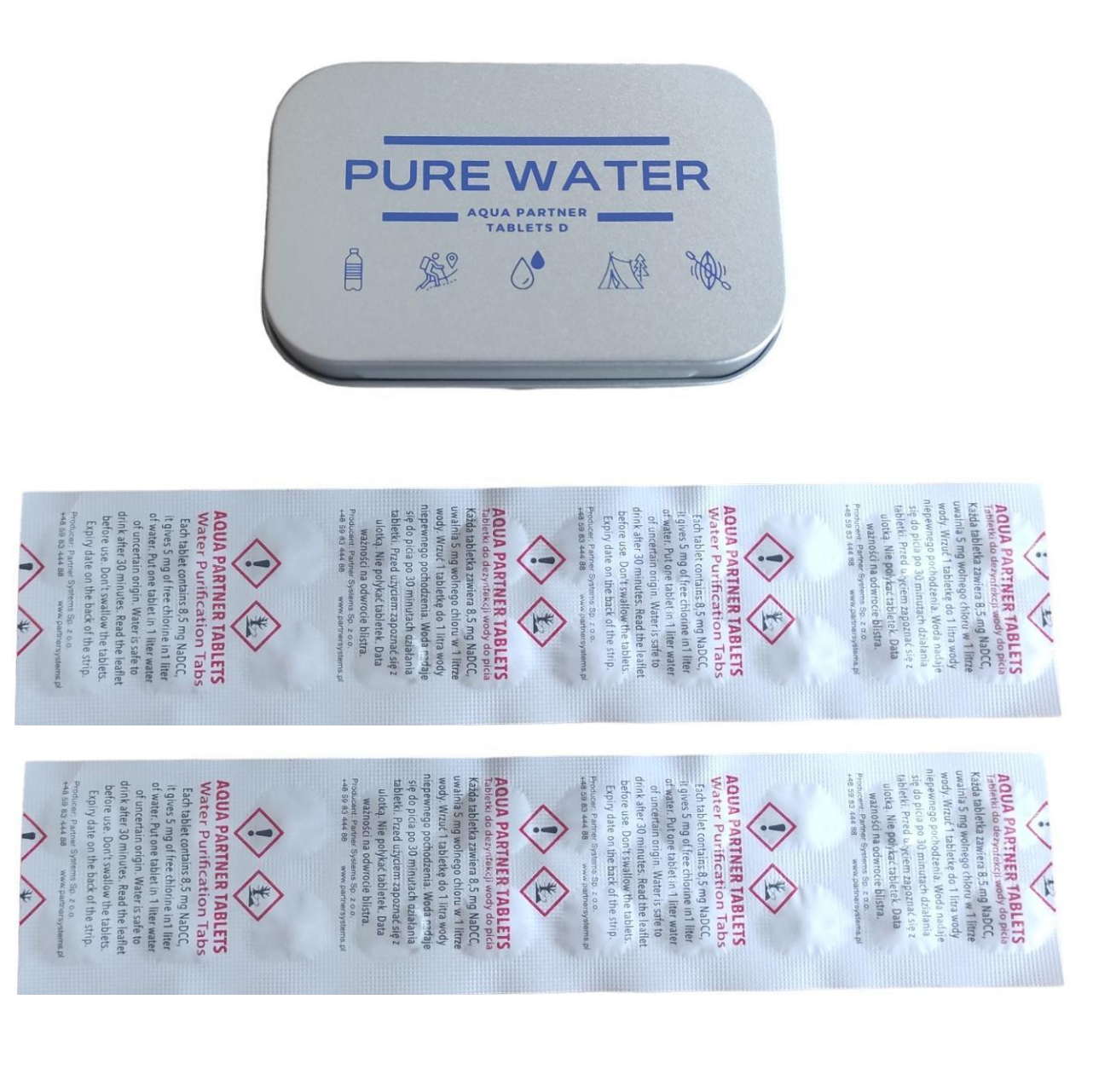 Zestaw do uzdatniania wody 40L od renomowanego producenta AQUA PARTNER SYSTEM to niezastąpione rozwiązanie w sytuacjach, gdzie jakość wody jest niepewna. Zestaw składa się z dwóch blistrów zawierających łącznie 40 tabletek AQUA PARTNER TABLETS D. Są to rozpuszczalne tabletki na bazie NaDCC, które eliminują mikroorganizmy powodujące zaburzenia układu pokarmowego, zapewniając bezpieczną do spożycia wodę.