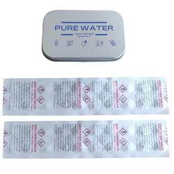 - Szybkość działania: 1 tabletka uzdatnia 1 litr wody w 30 minut (w przypadku podejrzenia ameby, 2 tabletki na 1 litr wody, 60 minut).